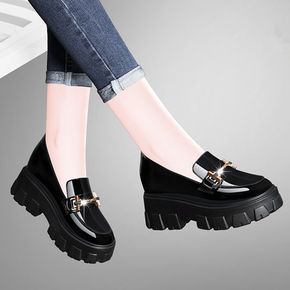 乐福鞋新款漆皮软底女单鞋休闲女鞋子厚底软皮鞋一脚蹬...