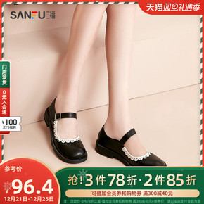 女鞋秋季新款玛丽珍鞋撞色花边女士休闲鞋时尚单鞋80...
