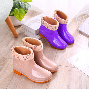 女雨鞋时尚休闲成人短筒防水防滑加棉绒四季通用女士雨...