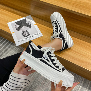 2021年春秋厚底帆布鞋女鞋子板鞋布鞋小黑鞋球鞋松...
