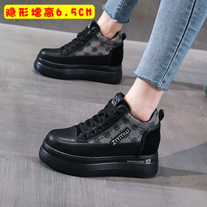 真皮高帮厚底小白鞋女秋增高2021爆款百搭网红老爹...
