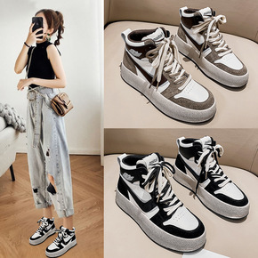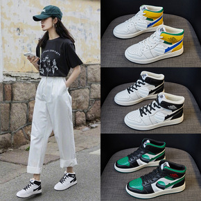 真皮高帮板鞋女鞋2021年新款学生秋季时尚潮流运动...