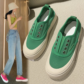 帆布鞋女夏季新款网面厚底休闲鞋板鞋网红百搭懒人鞋一...