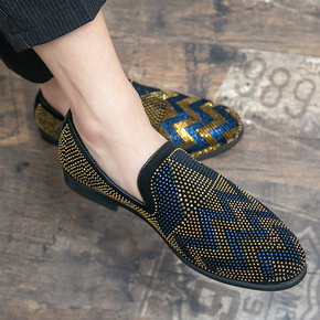 亚马逊跨境新款男士水钻休闲皮鞋韩版英伦透气一脚蹬懒...