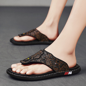 人字拖鞋男款夏季皮质高级感休闲皮凉拖防臭防滑耐磨拖...