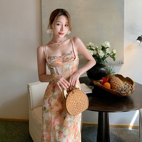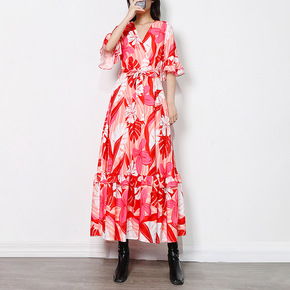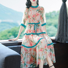 夏季真丝连衣裙批发重工桑蚕丝大摆裙沙滩裙花卉仙女裙...