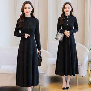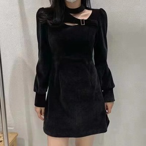 长袖连衣裙女2021秋冬欧美新款爆款气质收腰女神范...