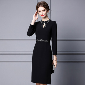 智丽设计高级感连衣裙秋季2021新款钉钻高贵优雅气...