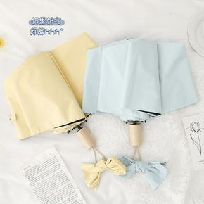 文艺木柄软糯ins雨伞女折叠晴雨两太阳伞防晒防紫外...