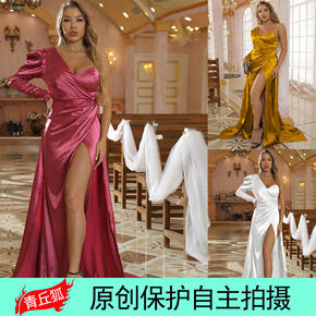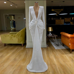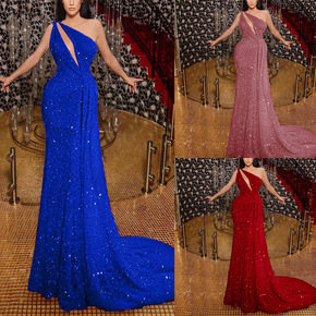 22春秋跨境热销外贸连衣裙多色大码长袖V领亮片鱼尾...