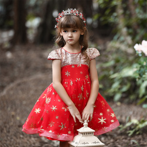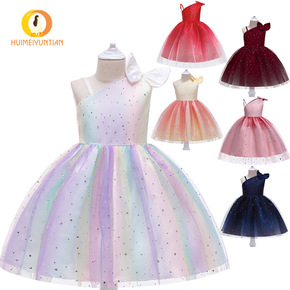 外贸欧美童装新款夏儿童婚纱礼服女童演出钢琴比赛生日...
