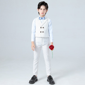 男童礼服秋季新款帅气条纹儿童马甲三件套宝宝钢琴主持...