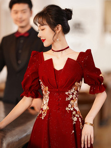 19130#敬酒服新娘2021新款结婚新款红色短款...