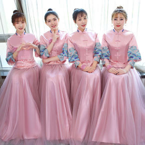 姐妹团伴娘礼服女禾服中式冬天小个子平时可穿长袖显瘦...