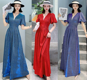 星空晚礼服新款长款亮丝伴娘团气质年会姐妹团主持合唱...