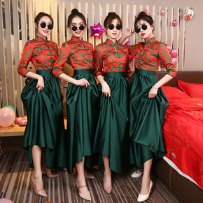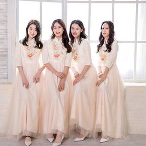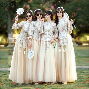 包邮新款修身中式复古大码伴娘服仙气质中国风姐妹团平...