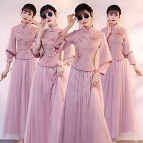 伴娘服新款中式新娘伴娘团结婚姐妹团中国风长款年会晚...