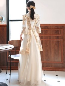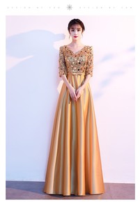金色晚礼服女2022新款宴会气质演出亮片高端轻奢小...