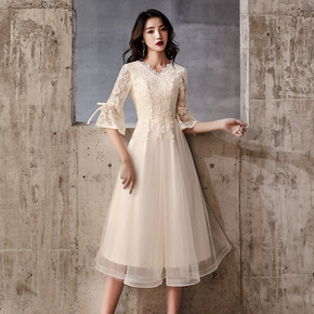 伴娘服2022新款春季婚礼短袖姐妹团礼服裙女显瘦小...