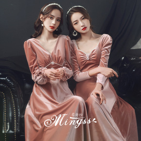 宴会晚礼服女秋季轻奢小众气质长款主持人演出法式生日...
