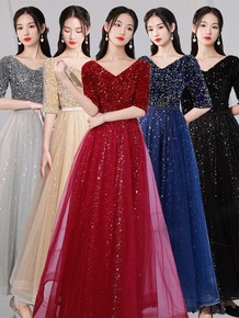 外贸跨境 2022新款梦幻缎面性感深V领艺考宴会舞...