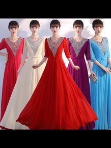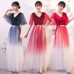 新款网纱大合唱演出服女长裙礼服成人合唱队演出服装合...