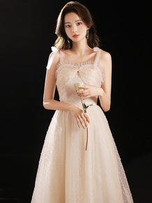 森系仙气吊带礼服2022夏季新款小个子聚会宴会主持...
