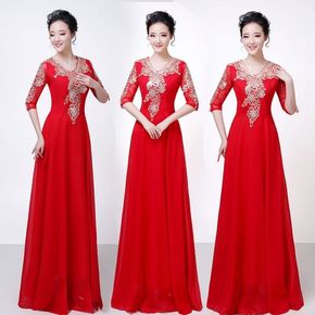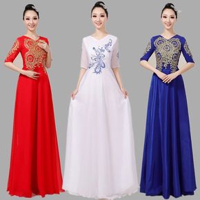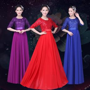 大合唱演出服女长裙新款大码修身学生朗诵红歌比赛表演...