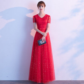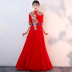 新娘结婚红色敬酒服2022新款长款中袖年会宴会演出...