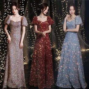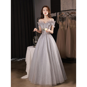 一字肩宴会晚礼服2022新款夏季轻奢高级感气质主持...