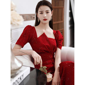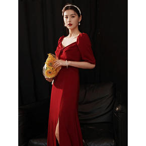 鱼尾酒红色敬酒服晚礼服女新娘修身气质2022新款宴...