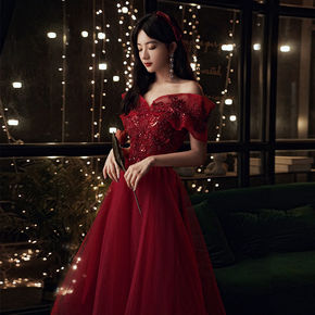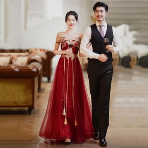 婚宴礼服酒红色敬酒服孕妇2022新款新娘订婚女平时...
