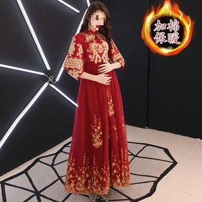 敬酒服新娘2022新款秋冬季酒红色中式结婚中国风宴...