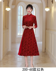 红色婚宴喜婆婆礼服2022年新款妈妈装中高考送考旗...