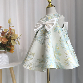 洋气印花缎面公主裙宝宝周岁礼服女宝宝日拍照轻薄夏季...