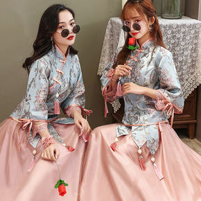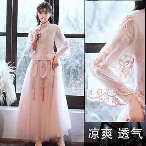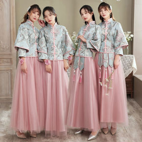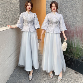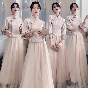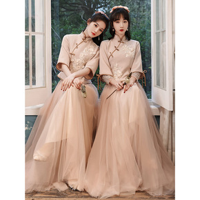 中式伴娘服2022新款夏季长款姐妹团闺蜜装礼服裙女...
