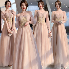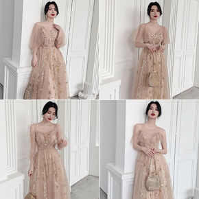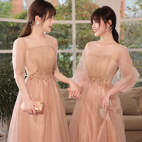 伴娘服平时可穿2021新款秋冬仙气质长款显瘦简约大...