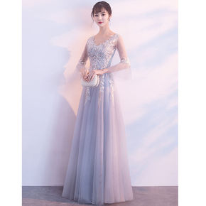 显瘦礼服长款伴娘服2022年新款夏季仙气质灰色伴娘...