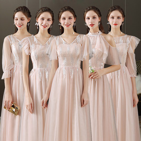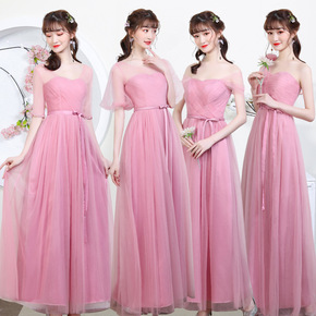 大码网纱伴娘服长款仙气质2021春季款婚礼姐妹团显...