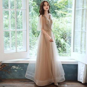 宴会晚礼服2021秋季新款伴娘服女短款年会主持人晚...