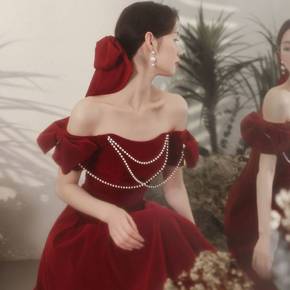 伴娘服平时可穿敬酒服新娘2021新款酒红色订婚长款...