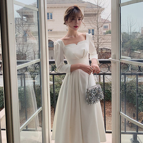 简约缎面轻婚纱森系新娘超仙旅拍出门纱平时可穿小礼服...