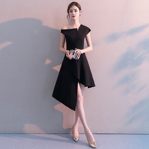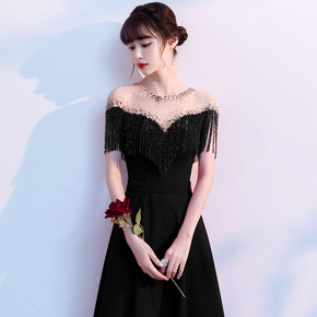晚礼服裙女夏小个子黑色宴会轻奢气质合唱演出服主持人...