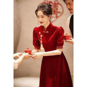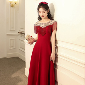 新款敬酒服中式酒红色晚礼服裙女新娘结婚订婚回宴会小...