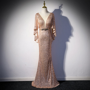 宴会晚礼服女2021新款长款性感主持人香槟色仙气梦...