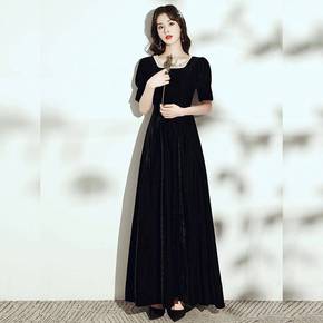 黑色晚礼服裙2021新款气质端庄长款宴会礼服裙主持...