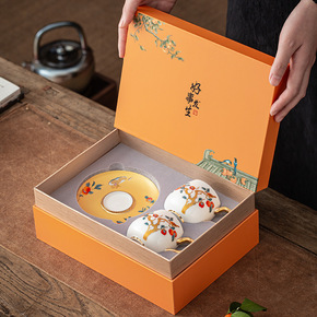 国潮轻奢描金对杯节日创意礼品茶杯咖啡杯伴手礼端午商...