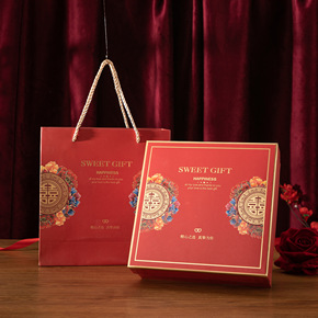 抖音同款中式大红创意结婚礼盒 手提天地盖婚礼伴手礼...