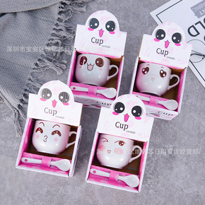 韩式ins风高颜值陶瓷杯带盖家用可爱卡通情侣杯创意...