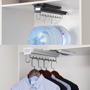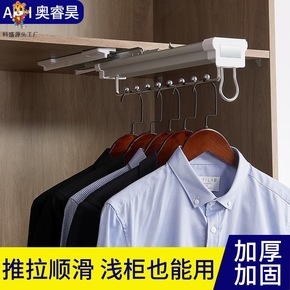 浅衣柜挂衣杆顶装竖纵向抽拉伸缩衣架五金配件衣橱横杆...